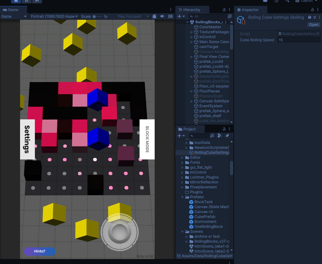 So then I knew that the blocks rolling around in general were using one routine, and the blocks climbing down into place were using another. I thought that was the case, but this was a very simple way to tell.